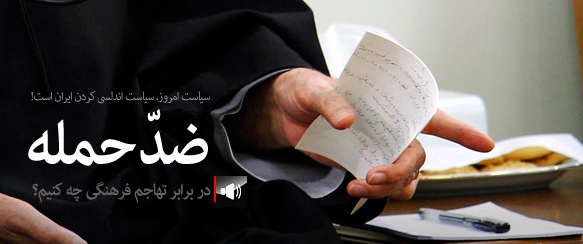 حضرت آیتالله خامنهای در دیدار با اعضای شورای عالی انقلاب فرهنگی، به تشریح بحث «تهاجم فرهنگی» علیه کشورمان پرداختند. به همین مناسبت پایگاه اطلاعرسانی KHAMENEI.IR کلیپ صوتی «ضد حمله» را با هدف پاسخ به این پرسش که «در برابر تهاجم فرهنگی چه کنیم؟» تهیه و منتشر کرد.
